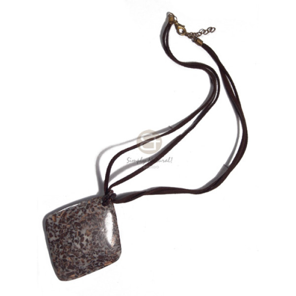 75mmx65mm diamond coco chips in resin in 2 rows leather thong / 18in..