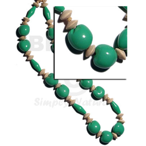 lei / rubber seeds and round wood beads 20mm in green combination/ 34 in.adjustable..