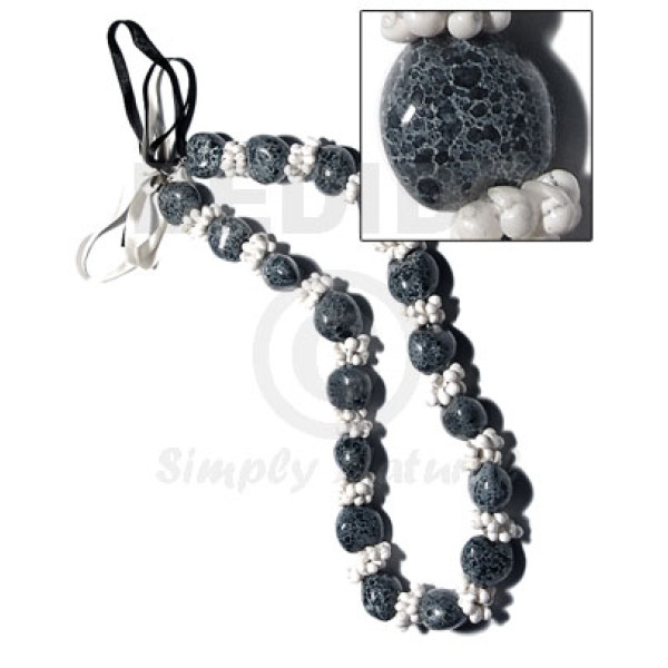 32 pcs. of kukui nuts in high polished paint gloss in black/blue combination in matching adjustable ..