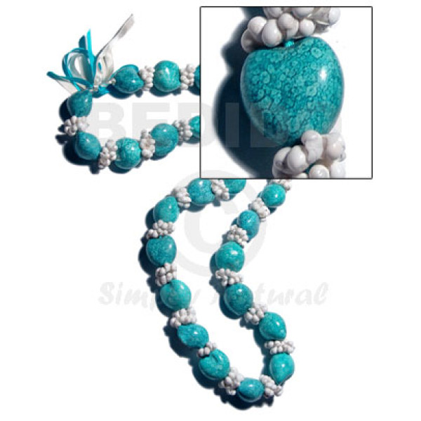 kukui nuts / marbleized metallic aqua blue / 32 pcs. / in matching adjustable ribbon the maximum le..