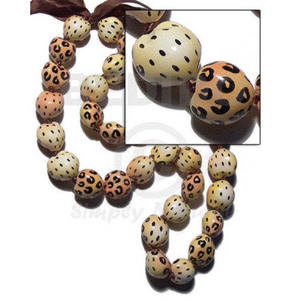 kukui seeds in animal print / leopard / 30 pcs. / in adjustable ribbon the maximum length of 54in..