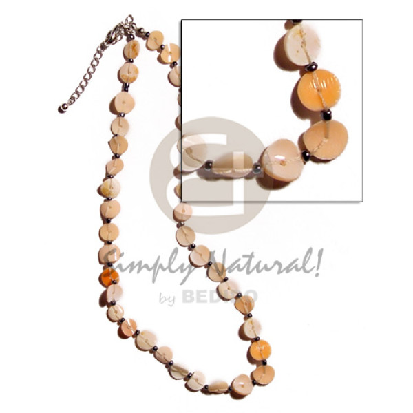 28mm round laminated golden amber kabibe shell ( 12pcs.) in high gloss glass beads accent / 20in..