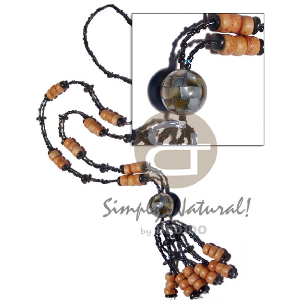 2-3mm nat. black coco Pokalet. tassled colored wood & palmwood beads /30 in...