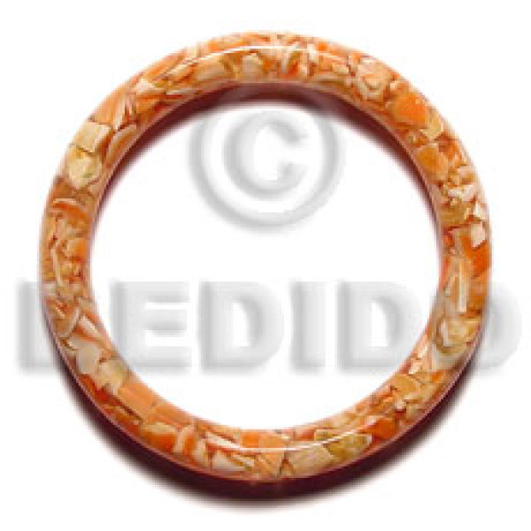 30mm round bright orange clear resin ( 7mm thickness ) laminated capiz shell flower elastic bangle ..
