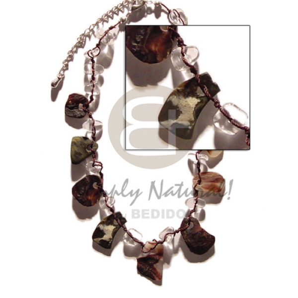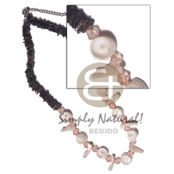 4-5mm coco Pokalet. nat. brown handpainted 15mm robles round wood beads & white rose shell accent /..
