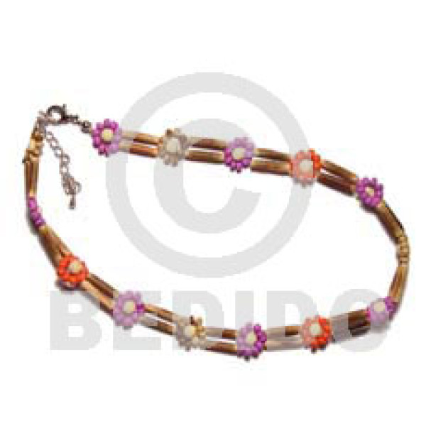 2 rows sig-id wood tube red/lavender/tiger 2-3mm coco pokalet flower..