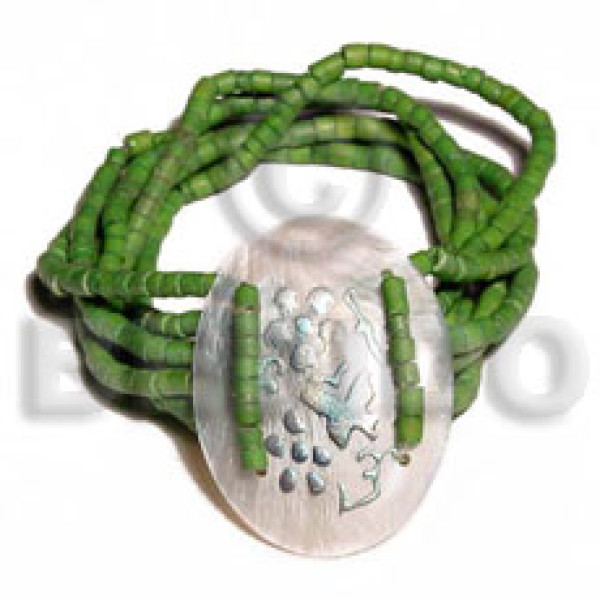 5 layer elastic 2-3mm green coco heishe 35mm oval handpainted hammershell..