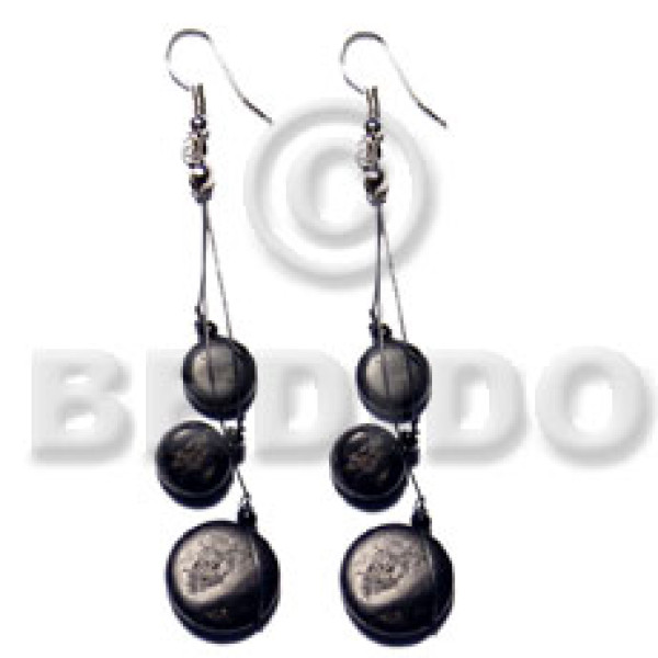 dangling single row black coco chips/Pokalet in bronze metallic splashing..