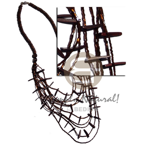 4-5mm coco Pokalet dangling graduated 10 rows multilayered cut beads, coco stick in brown tones / ..