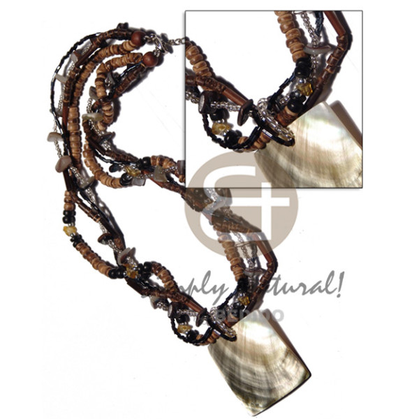 4 rows graduated multilayered 4-5mm coco Pokalet beads 4 rows 4mm glass beads and 20mm round woo..