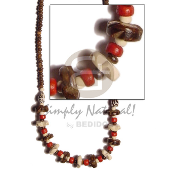 4-5mm coco heishe black slidecut nat. wood beads and horn beads accent..