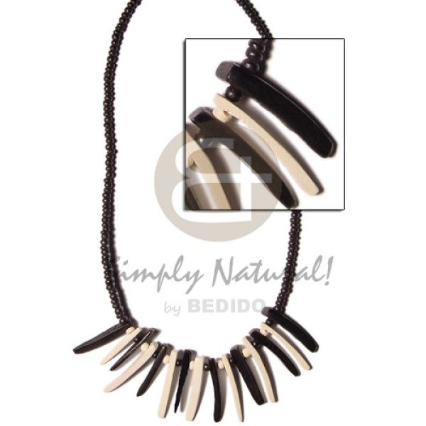 4-5mm coco heishe black slidecut nat. wood beads and horn beads accent..