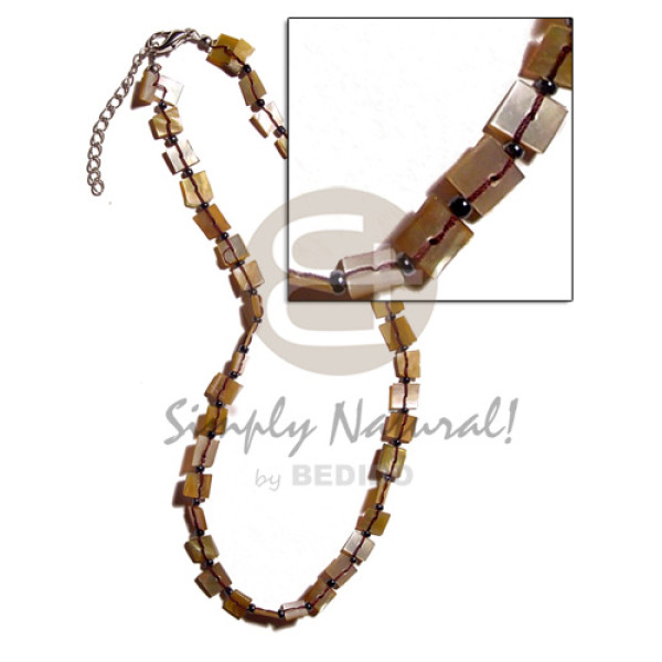 dangling single row black coco chips/Pokalet in bronze metallic splashing..