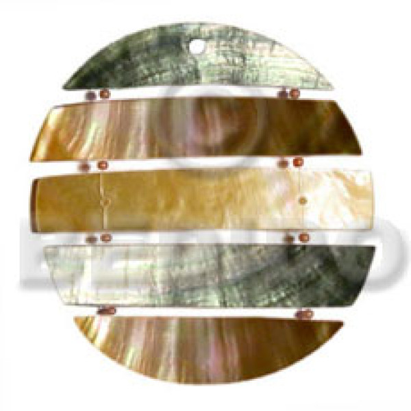 7 rows 2-3mm coco heishe golden tan 40mm handpainted hammershell round pendant..