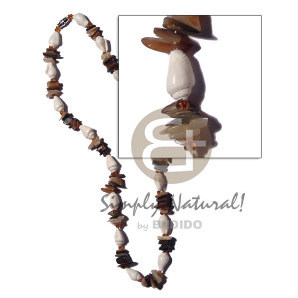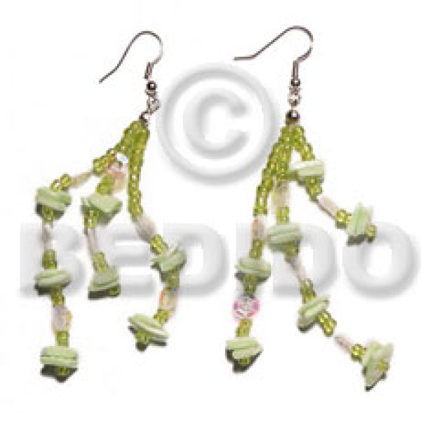 buri seed tube & colored white clam combination glass beads/ green tones..
