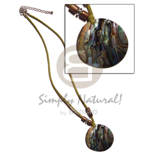 40mm round blacklip pendant blacklip lip sq. cut, troca garlic & glass beads accent..