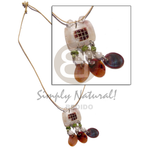 rectangular 35mm hammershell skin 3 pc. dangling 15mm oval blacktab & crazy cut shell in wax cord..