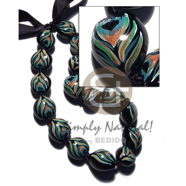 kukui seeds in animal print / peacock / 14 pcs. / in adjustable ribbon the maximum length of 36in..