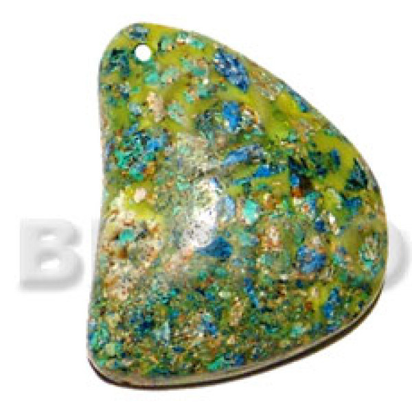 dangling round 35mm kabibe shell in green color embossed handpainted design..