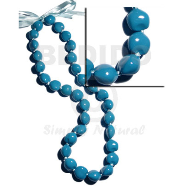 lei / kukui seeds and nat. wood beads in bright blue combination / 32 in..