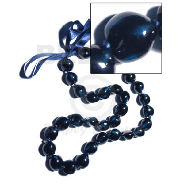 32 pcs. of kukui nuts in high polished paint gloss in black/blue combination in matching adjustable ..
