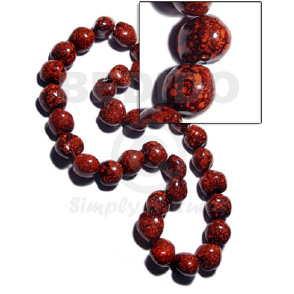 32 pcs. of kukui nuts in high polished paint gloss marbleized red/black combination in matching rib..