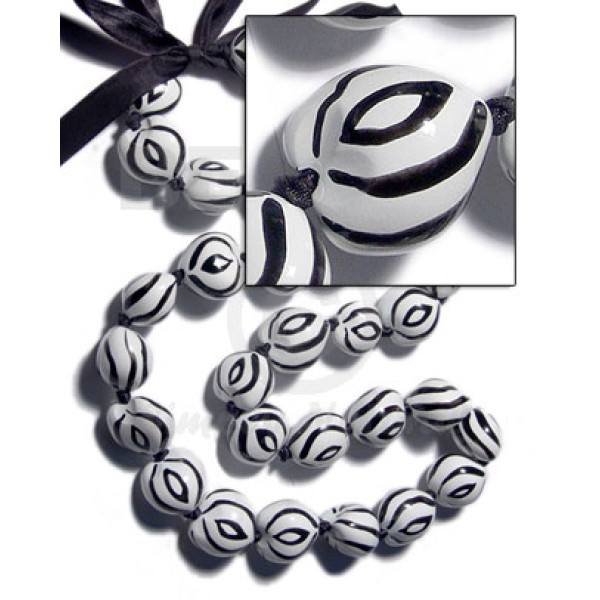 kukui seeds in animal print / zebra / 30 pcs. / in adjustable ribbon the maximum length of 54in..