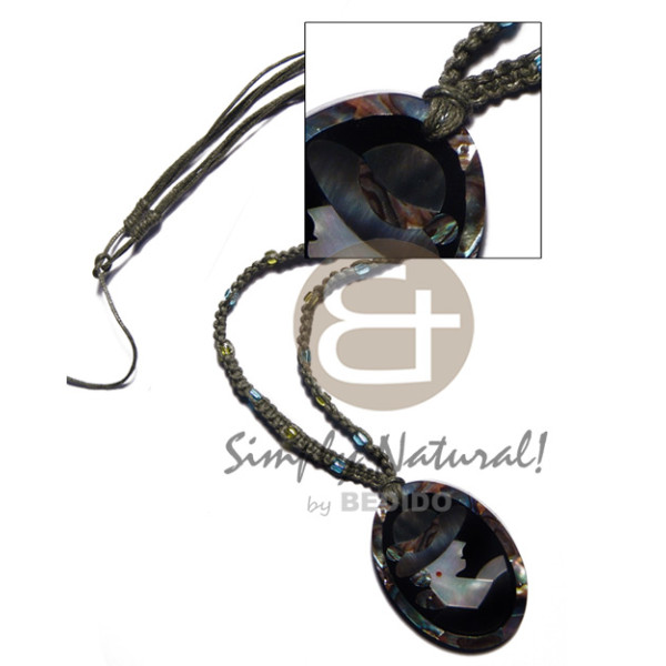 olive green macrame cord and 50mmx38mm oval pendant /elegant hat lady delicately etched in shells - ..