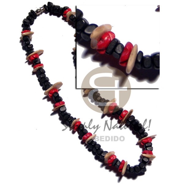 8mm black coco sq. cut red 10mm coco flower and nat. coco chips combination...