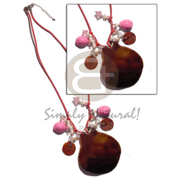 adjustable brown leather thong chocolate shell - spiral pendant (approx. 50mmx15mm - varying natur..