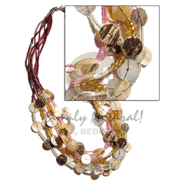 4-5mm coco Pokalet nat. luhuanus chips and buri seed beads combination / 28in..