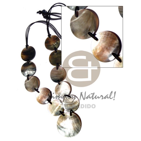 dangling flat round 35mm black resin laminated blacklip chips combination..