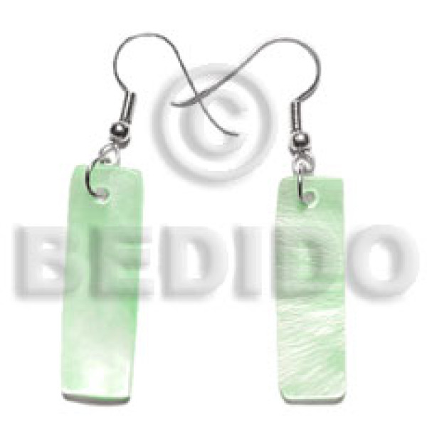 dangling 30x10mm pastel green hammershelll bar earrings..