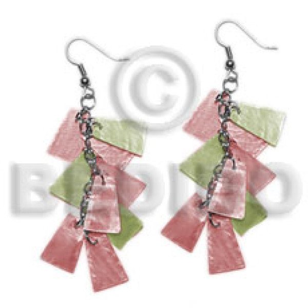 dangling subdued pink/subdued olive green 20mmx15mm capiz /9pcs. in metal chain..