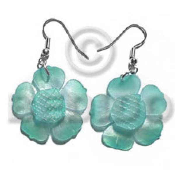dangling double round 25mm blue capiz shell 15mm capiz subdued green flower..