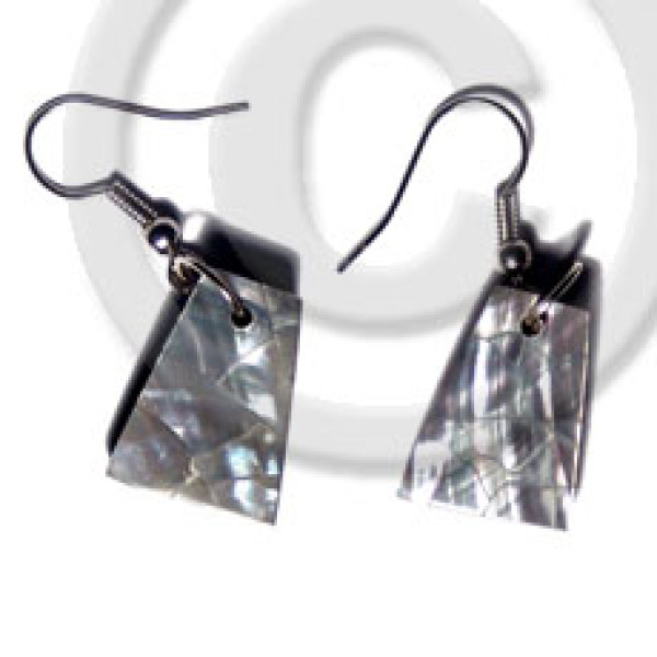 dangling 18mmx14mm pyramid laminated green shell cracking 5mm black resin backing..