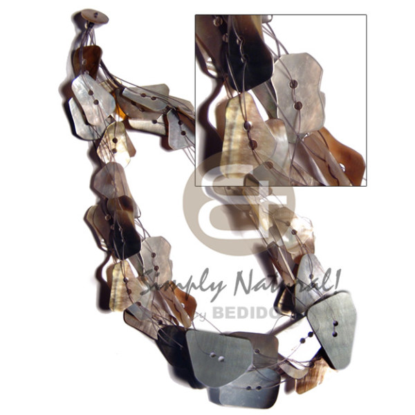 blacklip shells in varied sizes -38mmx25mm / 25mmx14mm in intertwined nylon strings..
