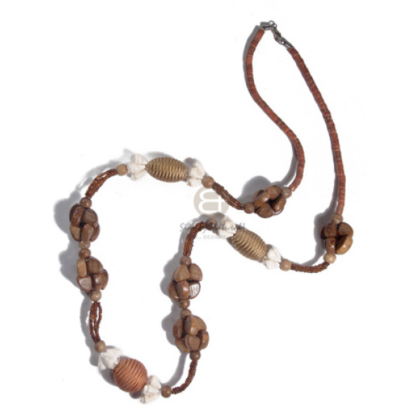 2-3mm coco pokalet tiger palmwood & shell accents & 45mm teardrop cowrie tiger pendant..