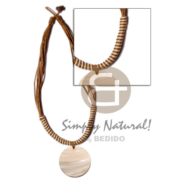clear & brown glass beads flat choker matching 40mm round handpainted hammershell pendant..