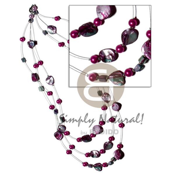 floating lavender kabibe shell nuggets in 3 graduated rows of magic wire 28" / 24" / 22" pearl be..