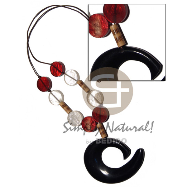 wax cord 20mm laminated red/nat. white capiz clear resin backing and bamboo burning 80mm55mm blac..