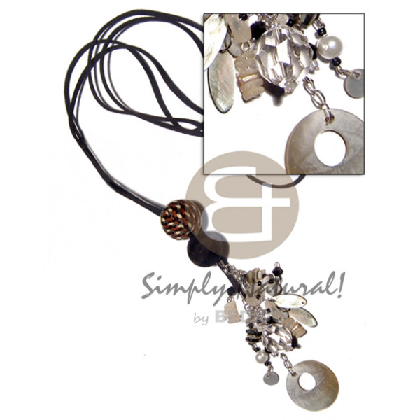 50mm laminated paua chips in resin 4-5mm coco Pokalet nat./cut beads and wood beads combination..