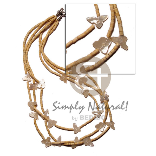 55mm brownlip heart pendant on 3 rows glass/cut beads combination / 18in..