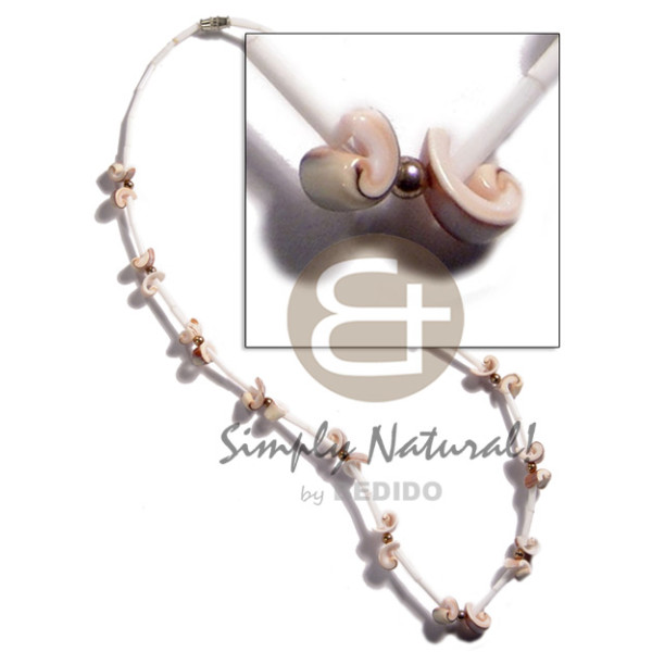 4-5mm coco nat brown bamboo tube burning accent and cowrie fang pendant / 18in..