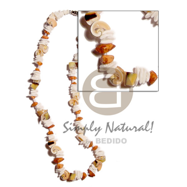 yellow hammershell heishe buri seed, horn beads & sq, cut shell accent 40mm scallop MOP cowrie sh..
