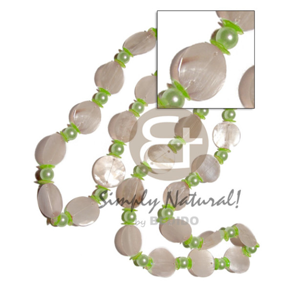 dangling 15mmx8mm disc robles wood beads acrylic crystals & blackpen shell nuggets accent..