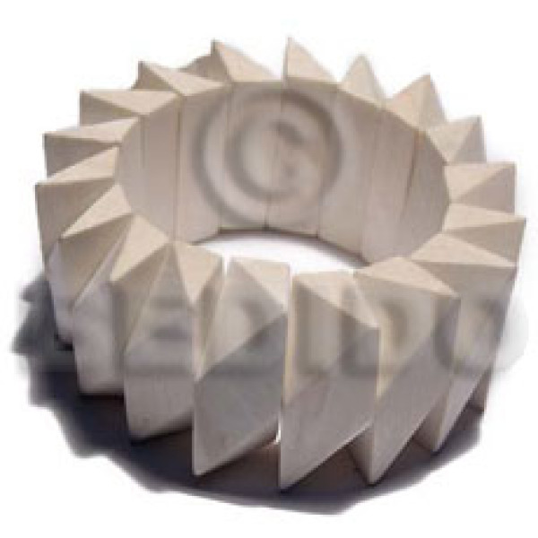 45mmx15mm triangle buffed nat. white wood elastic bangle clear coat finish..
